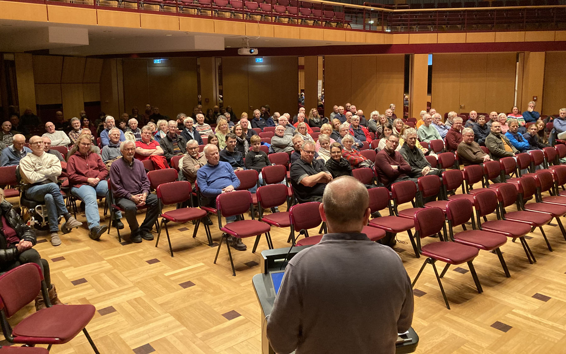 09.03.2025In die riesige Stadthalle waren ca. 150 interessierte und fachkundige Menschen gekommen. So setzte meinerseits etwas Aufregung ein, vielleicht hat es ja niemand bemerkt? Der Vortrag „Faszination Universum“ wurde als „interessant“ und „gut“ zurückgespiegelt, aber auch als streckenweise zu lang.